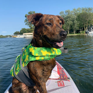 The fun starts here. Let your dog learn on the safety of land to get on the SUP. Get settled and stable on the board with gentle wave action on shore. Review of safety and appropriate flotation gear for both you and your pup. Then into the shallow water to paddle, flip, recover, and get moving all in the safety of the shallows. When confidence and skills are sufficient! It's time to go for a real ride. Dogs of all shapes and sizes are encouraged.